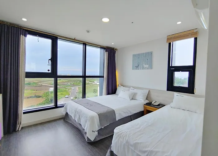 3성급의 스카이 호텔 제주은 곽지해수욕장에서 2.9km 위치해 있습니다. 호텔은 제주에서 편한 숙박을 위해 평면 스크린 TV, TV, 커피 및 티 메이커가 마련된 31 개 룸을 제공합니다.